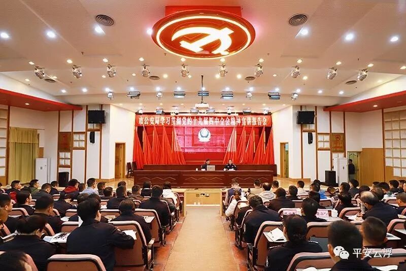 为深入学习贯彻党的十九届四中全会精神,引导广大党员干部群众把思想和行动统一到全会精神上来,把智慧和力量凝聚到实现全会确定的各项目标任务上来,近日,市公安局邀请了市委宣讲团成员、市委党校校委谭清秀作了党的十九届四中全会精神宣讲报告会,会议由局党委委员、政治处主任、主题教育办主任蒋小玲主持,市局在家党委班子成员、全体民警及2019届全市公安机关新警培训班全体学员现场聆听了宣讲。