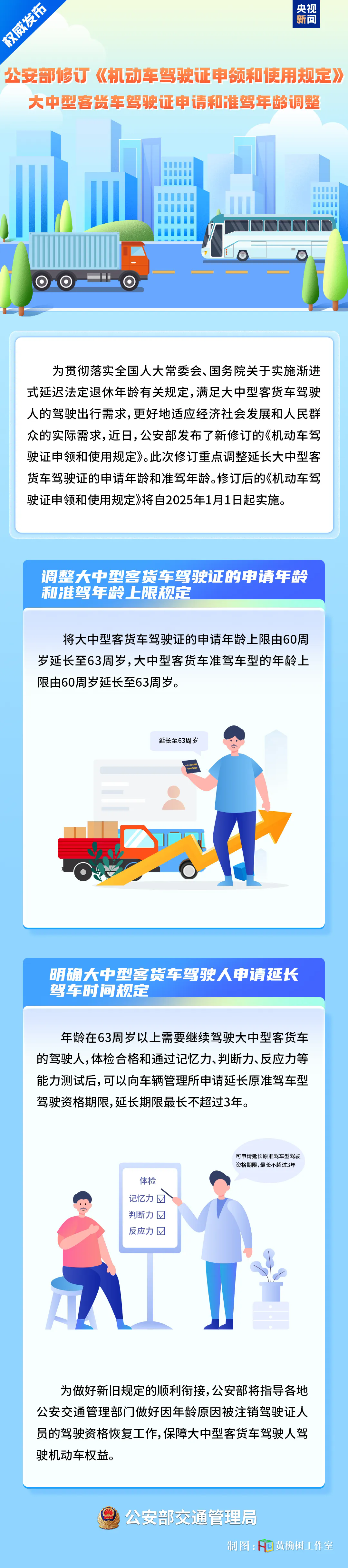 近日,公安部发布了新修订的《机动车驾驶证申领和使用规定》。此次修订重点调整延长大中型客货车驾驶证的申请年龄和准驾年龄,积极保障群众就业权益。修订后的《机动车驾驶证申领和使用规定》自2025年1月1日起实施。