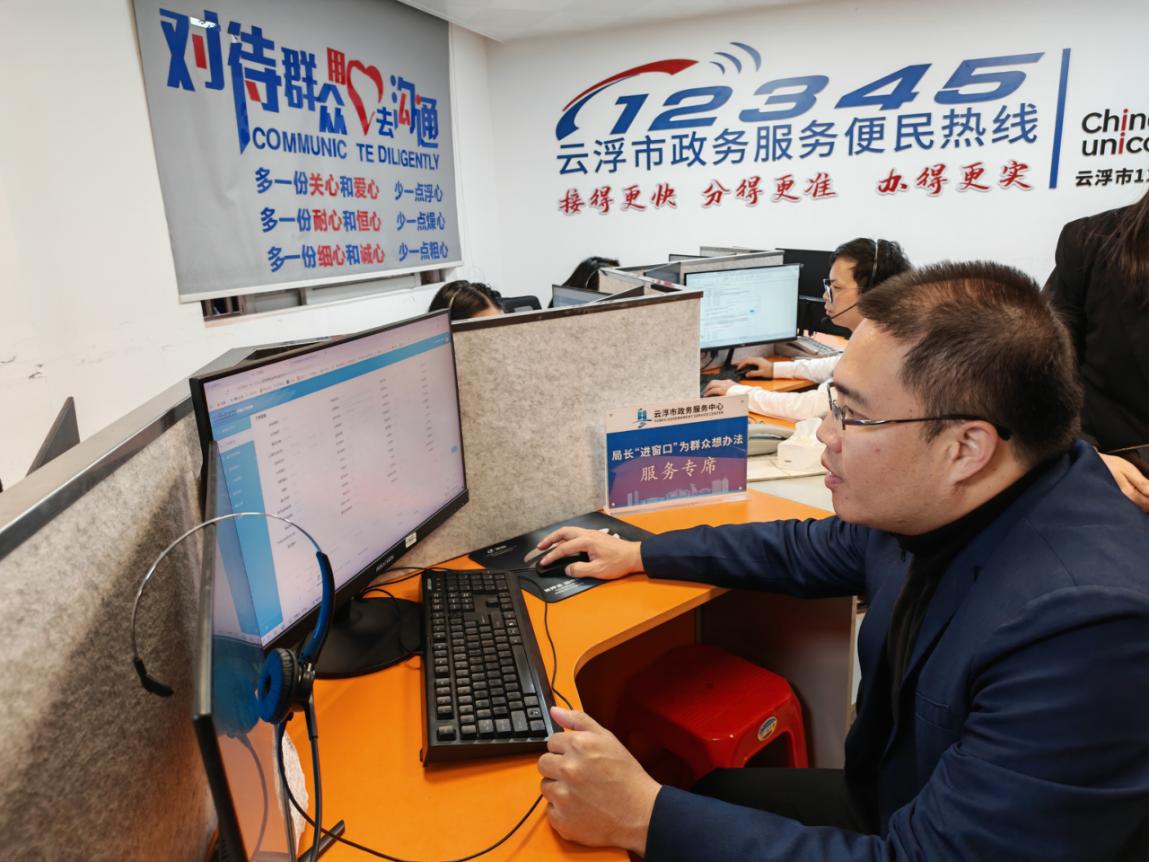 在12345便民热线话务室,实地了解热线运作机制以及科技业务知识库更新情况,与市行政服务中心相关负责人及一线工作人员沟通交流。重点了解业务办理难点、企业群众满意度等情况,认真听取工作人员工作困惑及改进建议,凝聚服务提升工作共识。
