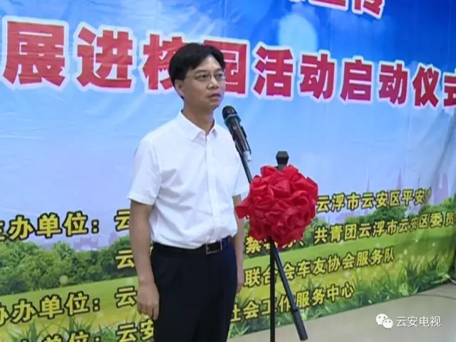 云安区委副书记、政法委书记、区禁毒委副主任吴维力在仪式上宣布云安区禁毒宣传暨禁毒图片巡展进校园活动正式启动。