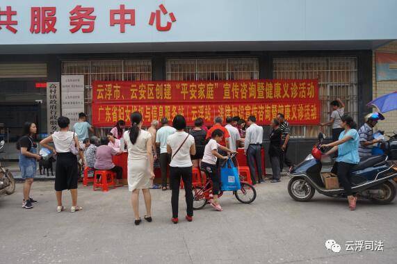 户外宣传咨询活动在高村镇圩镇举办,活动围绕妇女法律知识、平安家庭、禁毒等内容进行宣传。工作人员向过往群众派发宣传资料、宣传品,对云浮服务站进行推介,并开展“平安家庭”创建、禁毒、安全生产等宣传,现场提供咨询服务,高村镇卫生院医护人员也开展了现场义诊服务。