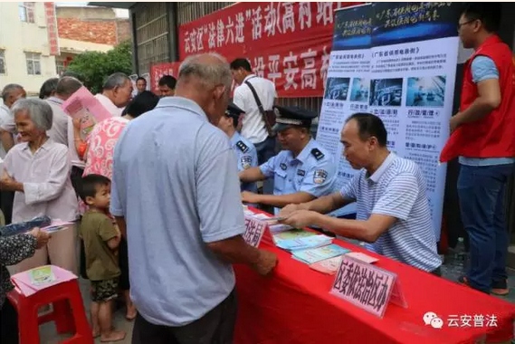 为促进“法律六进”活动的深入开展,推进“法治云安”建设进程,让法治宣传教育工作进一步走入基层。近日,云安区司法局、区普法办、区委依法治区办、区文联到高村镇开展“法律六进”活动。活动主要有法律咨询,法治书法即席挥毫,摆设图片展览,举办法律讲座等形式。
