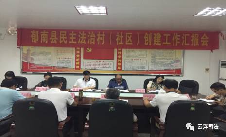 汇报会上,莫家清局长汇报了郁南县民主法治村(社区)创建工作进展情况和取得的成效,市考评组成员分别作了点评发言。