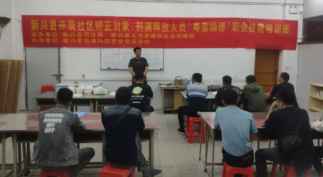 为进一步加强刑满释放解除矫正人员培训就业帮扶,增强社区矫正对象和刑满释放人员市场就业能力和创业能力,近日,新兴县司法局联合县人力资源和社会保障局,与新兴县恒通科技职业培训学校展开合作,共同开设了第一期以社区矫正对象和刑满释放人员“两类”人员为主的“粤菜师傅”职业技能培训班。