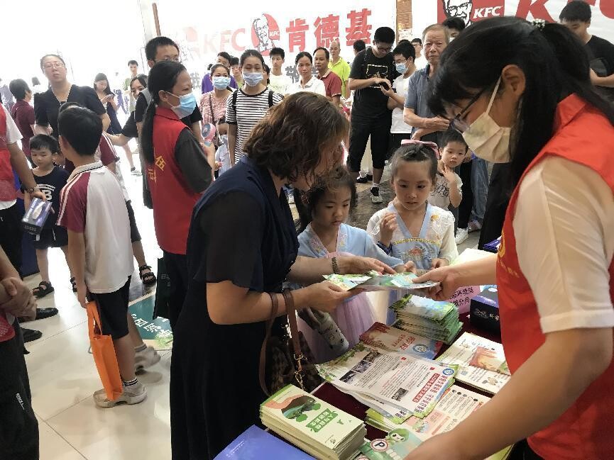 活动现场设立咨询台、向来往群众派发《信访工作条例》《关于依法处理信访活动中违法犯罪行为的通告》《反有组织犯罪法》等资料宣传小册子和平安建设、扫黑除恶、环境安全等宣传单张,以及环保购物袋、便民抽纸等宣传品,现场解答群众关于信访的咨询提问。工作人员引导群众关注“平安云浮”“云浮政法”“云浮12345”“12369环保举报”以及“云浮市生态环境局”等公众号,通过公众号能随时随地了解更多平安建设、信访、扫黑除恶和生态环境保护方面的知识和新闻动态,增强公众对平安建设和信访工作的了解和支持。据统计,活动累计派发各种宣传资料100多份。