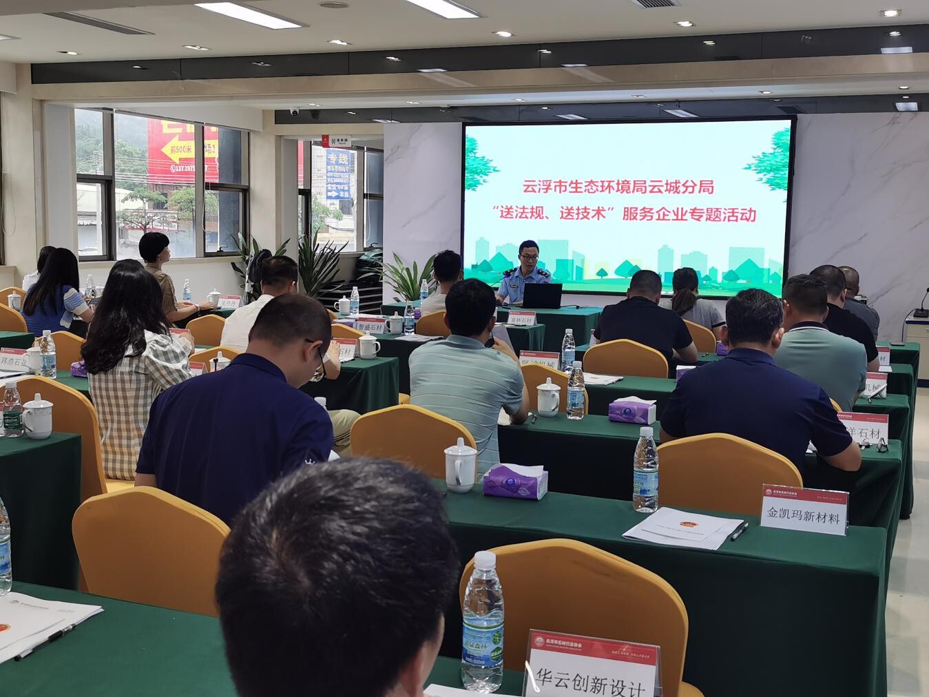 为提升石材行业污染防治技术水平,强化企业环境守法意识、助力深入打好污染防治攻坚战,落实市委“365”竞标争先体系的实践指向,深入推进绿美云浮生态建设,厚植云浮石材行业高质量发展的绿美底色,近日,云浮市生态环境局云城分局在云浮市石材行业协会二楼会议室开展“送法规、送技术”服务企业石材行业专题宣讲活动,现场约40家规模以上石材企业参加。