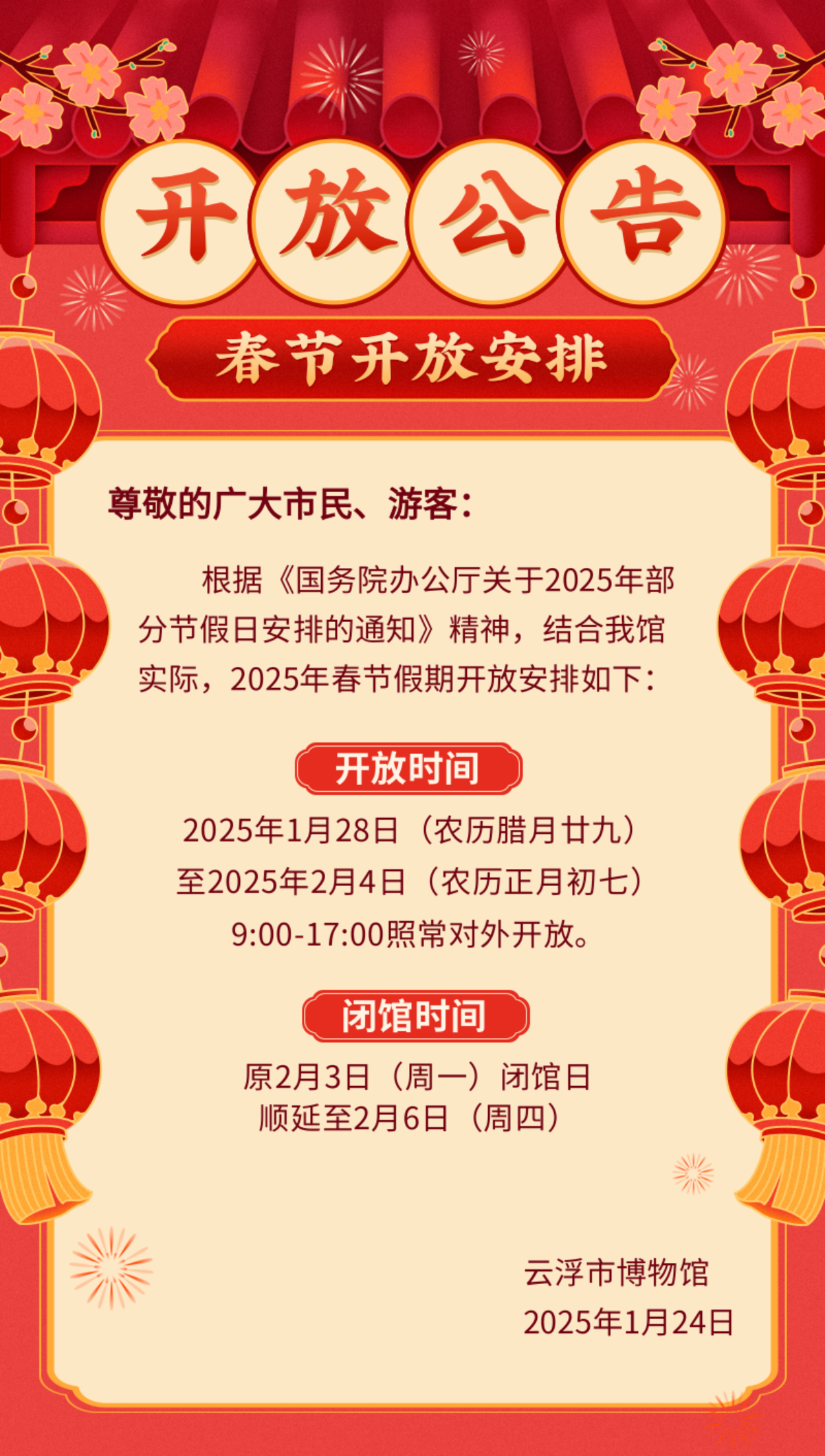 【公告】云浮市博物馆“春节”假期开放公告