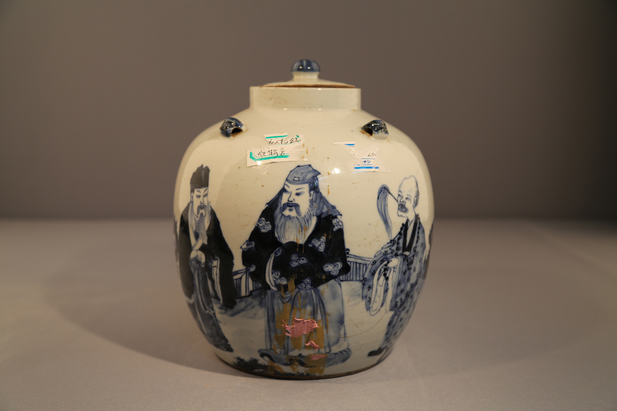 清代是青花瓷期发展的鼎盛时期,四系瓷盖罐一般用于盛储器或陪葬用具,这一时期大量生产人物图,其中清代青花瓷器中的人物纹大致可分为婴戏图、侍女图、高士图、神话宗教人物图、 历史戏曲小说人物图、寓意人物图和山水人物图这七个类别。普遍用于教化做法,起着“成教化,助人伦”的功能。而青花瓷人物刻画是中国传统艺术中的一种独特形式,其文化内涵丰富且具有深厚的艺术价值。青花瓷上的人物形象根据古代人物、神话传说、历史故事等为题材,以线条流畅、色彩淡雅的青花技法绘制而成。这些人物形象不仅形象生动,而且具有独特的教育功能,反映了当时社会的审美观念和价值取向。