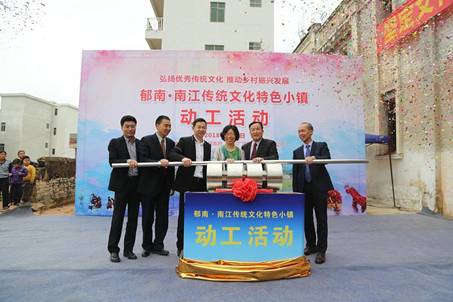 在南江传统文化特色小镇项目动工仪式上,广东广域投资发展有限公司董事长陈浩然和郁南县委副书记、县长韩新锋分别致辞,市委常委、宣传部部长郭亦乐,郁南县领导与广域集团有关领导等共同推杆启动,并参观了南江传统文化特色小镇规划情况。