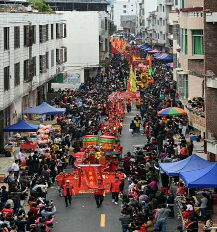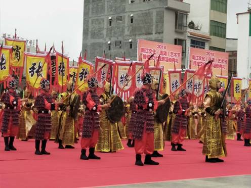 民间艺术大巡游让观众目不暇接。来自郁南县连滩中学200名学生组成的张公诞献礼队,精心演绎张元勋将军行军出巡、排兵布阵、奋勇杀敌血战历史,把将军平瑶乱、护万民的历史演绎得恰到好处。麒麟舞、醒狮团拜、荷龙舞、广西南江风情录等反映传统信仰、生活方式、民间习俗的富有特色的民俗活动在巡游中逐一呈现,充分体现了南江传统文化的历史厚重与文化传承,获得到场群众喝彩连连。