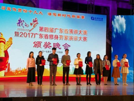 近日,由广东省文化厅、中共广东省纪委宣传部主办的“我的梦”第四届广东省演讲大赛暨广东省修身齐家演讲大赛总决赛及颁奖晚会,在东莞市东城影剧院进行。从东莞、河源、江门、潮州、省直、中山、肇庆和新丰八个分赛区脱颖而出的37位选手在台上激烈比拼。最终经过评委的专业评审,评出金奖6名,银奖10名,铜奖21名。云浮隶属肇庆赛区,肇庆赛区共有四名选手进入总决赛,其中云浮选手占两名。在总决赛中,云浮两名选手发挥出色,斩获一金一铜的优异成绩。