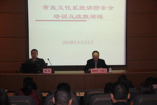 为提高干部职工的消防安全意识,切实将消防安全管理落到实处,防范消防安全事故的发生,2018年1月11日,市直文化系统举行消防安全知识培训及消防安全疏散演练活动。市文广新局党组成员、副局长黎明哲同志主持活动并作动员讲话。