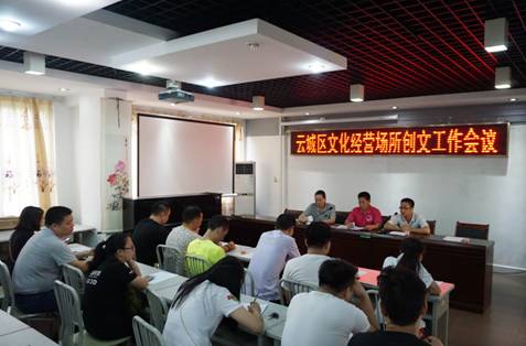 为迎接创建全省文明城市复检,部署开展创建全国文明城市工作,近日,云城区文体新局组织市城区文化市场经营业主、管理人员召开工作部署会议,市、区文广新局相关人员以及市区文化经营单位60位业主参加会议。