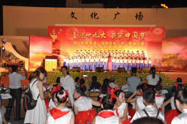 9月中旬起,郁南县组织举办了“喜迎十九大·共筑中国梦——2017年郁南县‘祖国在我心中’歌咏比赛”、郁南县庆祝国庆书画展览、文化惠民送戏下乡等系列文化活动,唱响主旋律,弘扬正能量,努力营造昂扬向上、热烈和谐的喜庆氛围,以昂扬的精神面貌迎接党的十九大胜利召开。