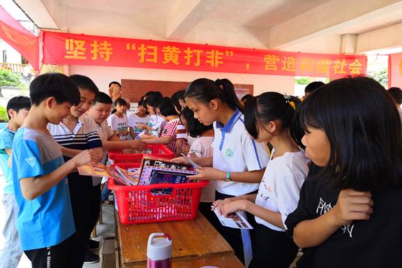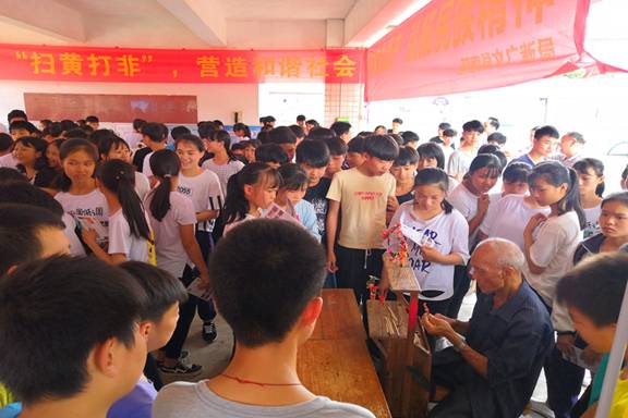 活动期间,同学们通过浏览“扫黄打非”系列宣传栏,聆听郁南县“扫黄打非”办工作人员讲解出版物、音像制品真假鉴别方法,提高了对非法出版物危害性的认识和鉴别能力;通过参观文物保护和非物质文化遗产图片展,观看“横经席制作技艺”、“面塑艺术”“粤曲曲艺”、“剪纸”“狮头扎作”等现场展示,参与书法练习等互动项目,加深了对郁南县文物以及非遗项目的了解,提高了对保护文物、保护传承优秀传统文化重要性的认识和欣赏接纳优秀文化的水平。活动共派发“绿书签”、文物、非遗保护、图书馆等宣传资料4000多份(册)。