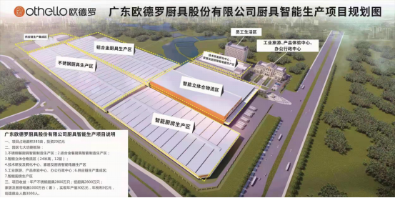 欧德罗厨具智能生产项目是由广东欧德罗厨具股份有限公司投资建设,项目总用地385亩,计划总投资20亿元,总建筑面积43万平方米,预计一期工程的10万平方米厂房将于今年年底完成并投入设备安装,明年1月实现一期投产。该项目规划建设研发孵化、智能制造、数据中心、生活服务等功能区,主要生产高端厨具、智能厨具和家用特色电器等产品, 项目建成投产后,可年产不锈钢、铝合金餐厨具 4000万只,厨房小家电 1000万台,年产值达40亿元,年创税1.6亿元,提供1000个就业岗位。