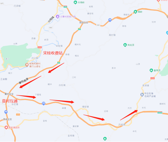 ① 广州方向S51肇阳高速前往宋桂镇的车辆可行驶至连滩收费站出口下高速走国道G234至县道X464、县道X472行驶到宋桂镇;