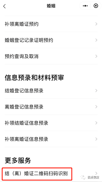 “粤省事”平台为二维码扫码验证的唯一端口,其他端口均无法进行有效扫描。进行第一次扫码识别的,须先通过人脸识别,再登录“粤省事”微信小程序,找到专区栏中的“民政服务专区”,点击“进入婚姻服务大厅”,点击“结(离)婚证二维码识别”,即可启用扫码识别窗口。