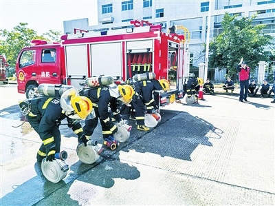 此次比武竞赛紧贴实战需求,设置3000米跑、俯卧撑、单杠卷身上、三盘水带连接、原地着灭火战斗服、90米灭火操六大核心科目,全方位检验参赛队员的体能素质、技能水平与协同作战能力,既是对专职队伍训练成果的集中检阅,更是提升应急救援实战能力的有力抓手。