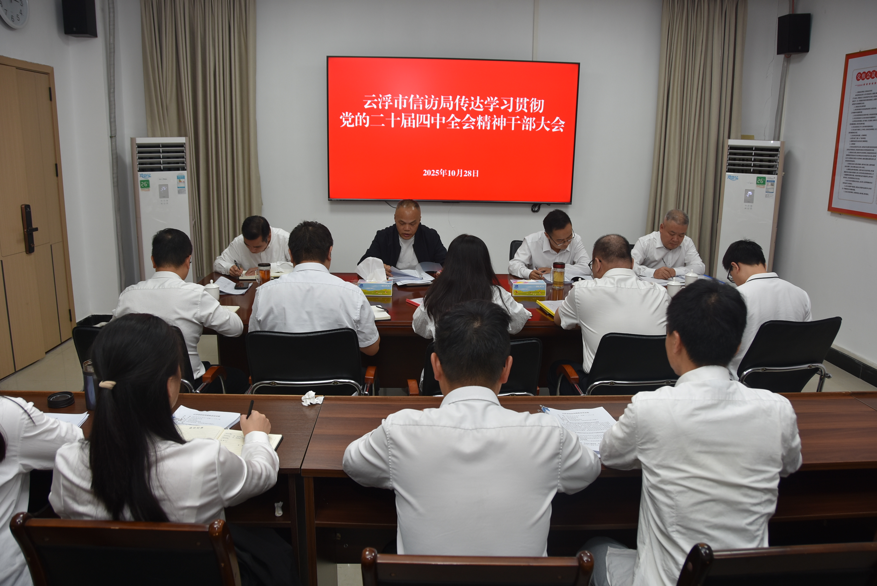 2025年10月28日下午,云浮市信访局召开全体干部大会,传达学习党的二十届四中全会精神,就贯彻落实工作进行安排部署。市委社会工作部副部长,市信访局党组书记、局长陈之经主持会议并讲话。