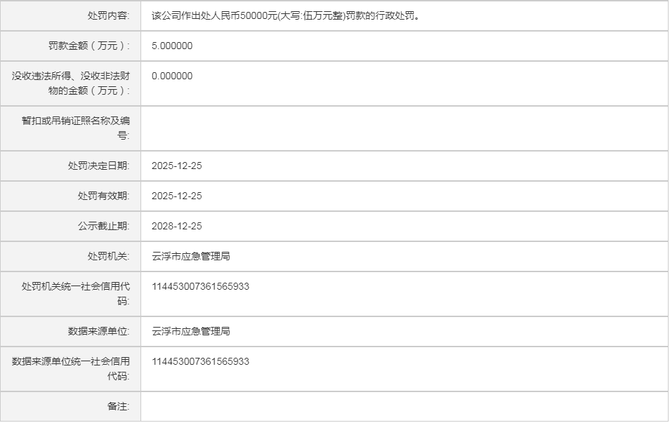 (云)应急罚〔2025〕16号中电建(云浮)绿色矿业有限公司