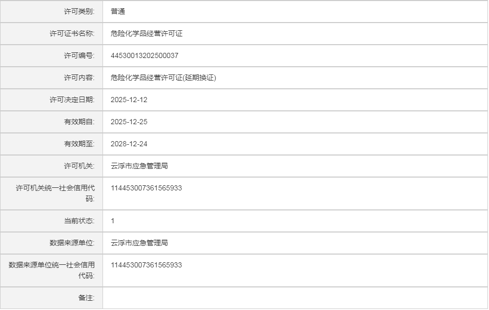 云应急(危化)许证决字〔2025〕97号中油碧辟石油有限公司云浮豪盛加油站危险化学品经营许可证(延期换证)