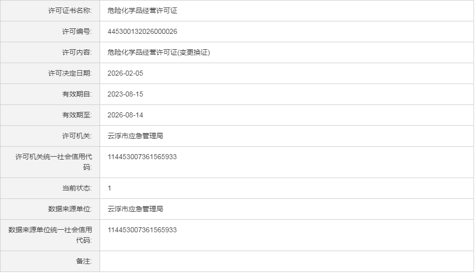 云应急(危化)许证决字〔2026〕20号中国石油天然气股份有限公司广东云浮新兴六祖加油站危险化学品经营许可证(变更换证)