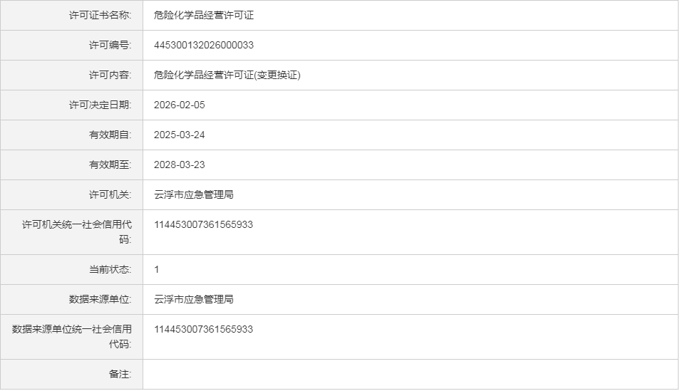 云应急(危化)许证决字〔2026〕32号中国石油天然气股份有限公司广东云浮郁南龙广加油站危险化学品经营许可证(变更换证)