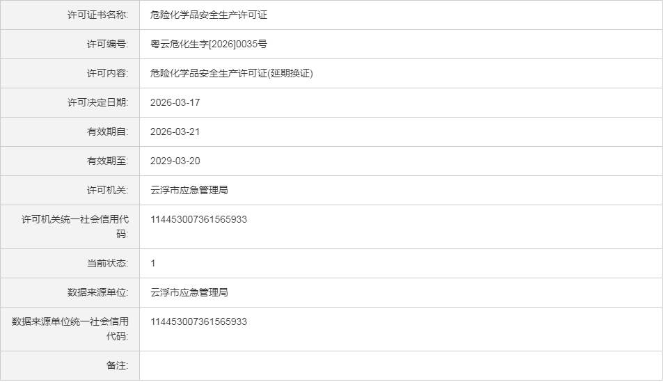 云应急(危化)许证决字〔2026〕42号广东正浩交通技术有限公司危险化学品安全生产许可证(延期换证)