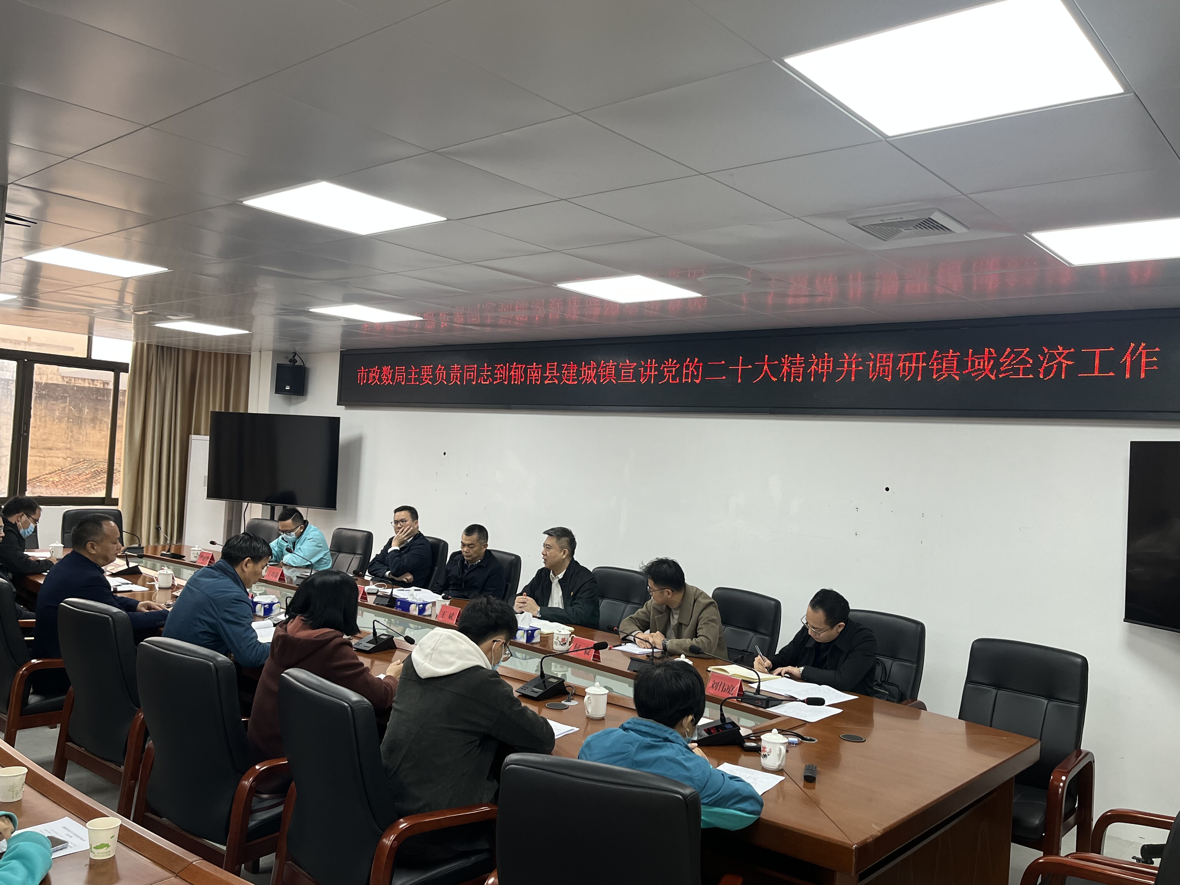 日前,市政数局党组书记、局长王斌同志到镇域经济联系点郁南县建城镇宣讲党的二十大精神并开展镇域经济调研工作。